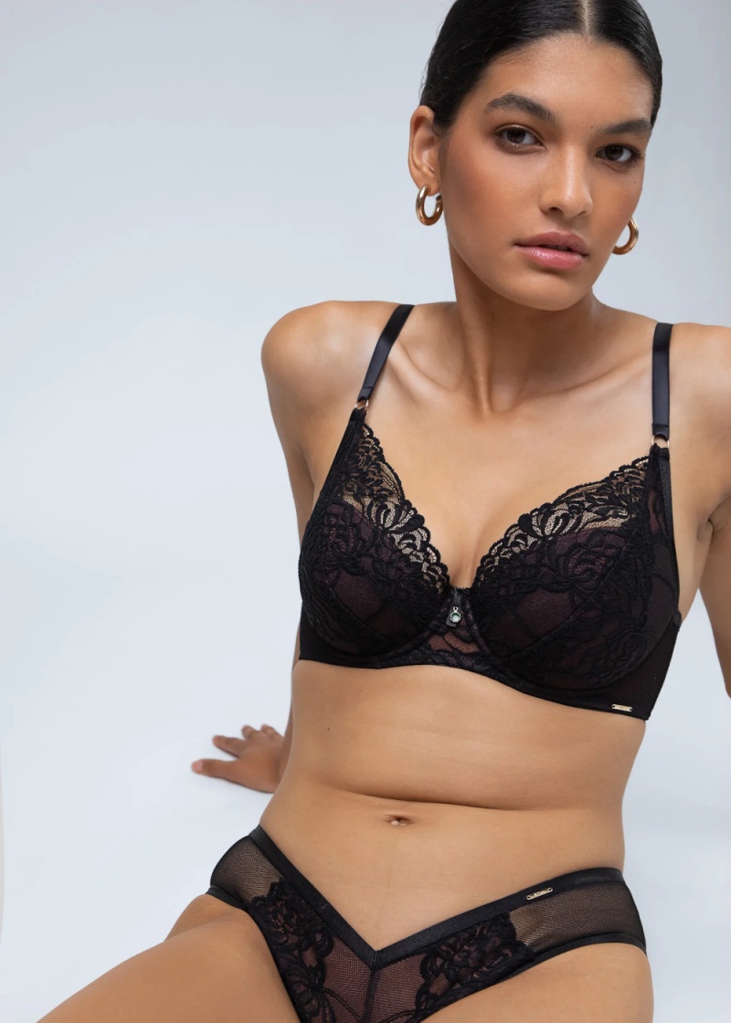 Biustonosz push-up Truffle Noir producenta bielizny marki Alles w czarno-czekoladowym odcieniu. Model zmysłowy, seksowny oraz elegancki, dedykowany dla małych oraz średnich biustów. Biustonosz pomoże Ci ukształtować idealną sylwetkę. Unosi oraz zbiera piersi do środka, nadając im pełny kształt, optycznie powiększy Twoje piersi. Biustonosz posiada wyjmowane wkładki, które służą do regulacji głębokości miseczek, pozwalając na idealne dopasowanie w zależności od potrzeby. Biustonosz sprawdzi się także przy korekcji asymetrii biustu. Całkowite usunięcie wkładek sprawi, że uzyskasz mniejszy efekt wyeksponowania piersi. Model łączy w sobie koronkę z kwiatowym haftem oraz półprzejrzystą siateczkę. Nietuzinkowy rysunek czarnej koronki został podkreślony tłem w kolorze gorzkiej czekolady. Koronka łącząca przeźroczystości i mocny, wachlarzowy wzór i czekoladowe akcenty sprawiają, że model jest wyjątkowo atrakcyjny. Przeźroczystości sprawią, że model jest wyjątkowo atrakcyjny. Koronka została wydłużona ku górze, co daje niesamowicie zmysłowe podkreślenie dekoltu. Wydłużenie koronki ku górze niwelujące ewentualne różnice między piersiami. Miseczki od wewnątrz pokryte są 100% bawełną. Obwód z fiszbiną boczną, wykonany z czarnej siateczki podszytej czekoladową, tiulową siateczką. Połyskujące ramiączka nieodpinane, regulowane na całej długości, a ich szerokość ramiączek dostosowana do rozmiaru. Całość uzupełniona metalowe dodatki w złotym odcieniu. Biustonosz zapinany z tyłu na dwurzędowe, trzystopniowe haftki, co daje możliwość lepszego dopasowania obwodu, nawet po dłuższym czasie użytkowania.
