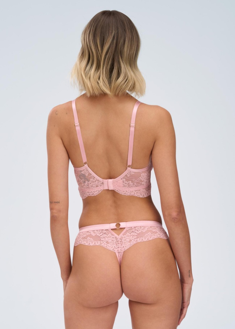 Biustonosz soft Powder Whisper M producenta bielizny marki Alles typ longline w odcieniu pudrowego różu. Model zmysłowy, seksowny oraz elegancki, dedykowany dla małych oraz średnich biustów. Miękka miska osadzona na fiszbinie, który subtelnie zbiera piersi i delikatnie je unosi, tworząc pełniejszy dekolt. Balkonetkowy fason longline łączy w sobie zalety stanika i gorsetu — optycznie wysmukla sylwetkę, podkreśla biust i zapewnia wyjątkowy komfort noszenia na co dzień. Pudrowy róż w duchu blushcore podkreśla biust i jest alternatywą dla klasycznych cielistych odcieni. Włoska koronka inspirowana stylem retro, zestawiona z transparentnym plenem, nadaje lekkości i szlachetności każdemu detalowi. Mostek uszyty z koronki podszytej siateczki, ozdobiony nowoczesną ozdobą. Obwód z fiszbiną boczną, wykonany z koronką. Połyskujące ramiączka nieodpinane, regulowane na całej długości, a ich szerokość ramiączek dostosowana do rozmiaru. Całość uzupełniona metalowe dodatki w kolorze różowego złota. Biustonosz zapinany z tyłu na dwurzędowe, trzystopniowe haftki, co daje możliwość lepszego dopasowania obwodu, nawet po dłuższym czasie użytkowania.