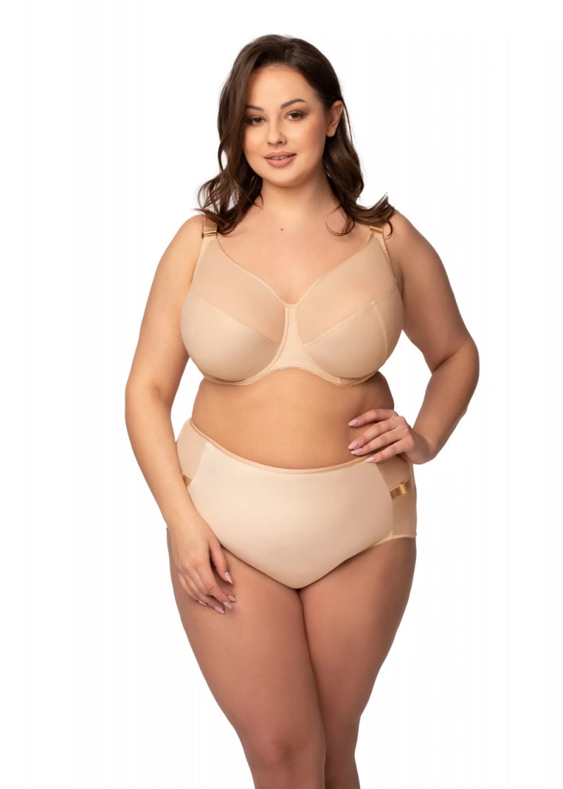Biustonosz soft Linda Big polskiego producenta bielizny damskiej Nessa. Model polecany szczególnie dla Pań z dużym, obfitym biustem, w beżowym odcieniu. Doskonałe cięcia w miseczkach, które gwarantują utrzymanie biustu. Górna listewka to elastyczna, przezroczysty siateczka, przez co biustonosz dopasowuje się do piersi. W dolnej części miski jest simplex, który mocno odciąża biust. Wzmocniony fiszbinami bardzo dobrze zbiera boki piersi i delikatnie je podnosi, nadając im ładny, naturalny kształt. Mostek wykonany z elastycznej, gęstej siateczki. Konstrukcja świetnie radzi sobie nawet przy bardzo dużym biuście, zapewnia odpowiednie podtrzymanie biustu. Obwód stabilny, szeroki wykonany z elastycznej dzianiny z fiszbiną boczną. Komfortowe, szerokie ramiączka, dostosowane do wielkości miseczki, regulowane na całej długości, nieodpinane. Biustonosza zapinany z tyłu na 3-rzędową, 3-stopniową haftkę.