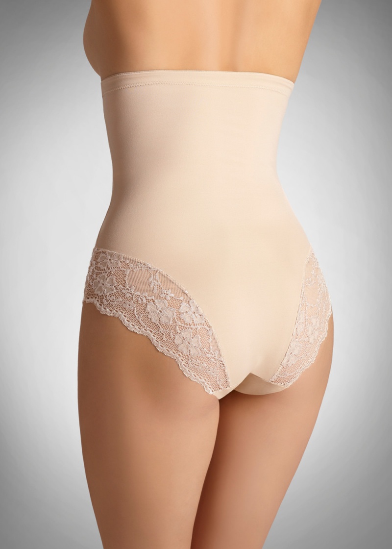 Wysokie figi damskie Vetina Marki Eldar w beżowym odcieniu. Model to wysokie majtki korygujące, które są doskonałym połączeniem elegancji i wsparcia dla Twojej sylwetki. Dół fig ozdobiony pasem koronki. Figi kończą się pod biustem, zostały stworzone z myślą o kobietach, które pragną poczuć się pewnie i komfortowo, jednocześnie podkreślając swoje naturalne piękno. Dzięki wysokiemu krojowi, majtki korygujące doskonale modelują brzuch i talię, nadając sylwetce harmonijny wygląd. Szersza guma z silikonem w pasie umieszczona od wewnątrz, zapobiega zsuwaniu się bielizny. Model zaprojektowany oraz uszyty w Polsce.