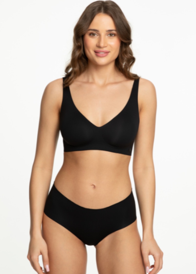 Figi damskie Infinity Classic marki Julimex w czarnym kolorze. Model o klasycznym kroju, wykończony bezszwowo. Bezszwowa konstrukcja to model wykonany z jednego kawałka materiału, klejony po bokach. Wykonane z wykorzystaniem innowacyjnej technologii Julimex Laser-cut. Majtki zapewniają doskonałe dopasowanie i pozostają niewidoczne pod ubraniem dzięki laserowo wyciętym nogawkom i pasowi. Nowoczesna dzianina rozciągająca się w pionie i poziomie. Dzięki zastosowaniu miękkiego materiału, który się nie roluje, zapewniamy nie tylko eleganckie wykończenie, ale także maksymalny komfort przez cały dzień. Figi posiadają w kroku higieniczną wkładkę z bawełny i doskonale sprawdzą się na co dzień.