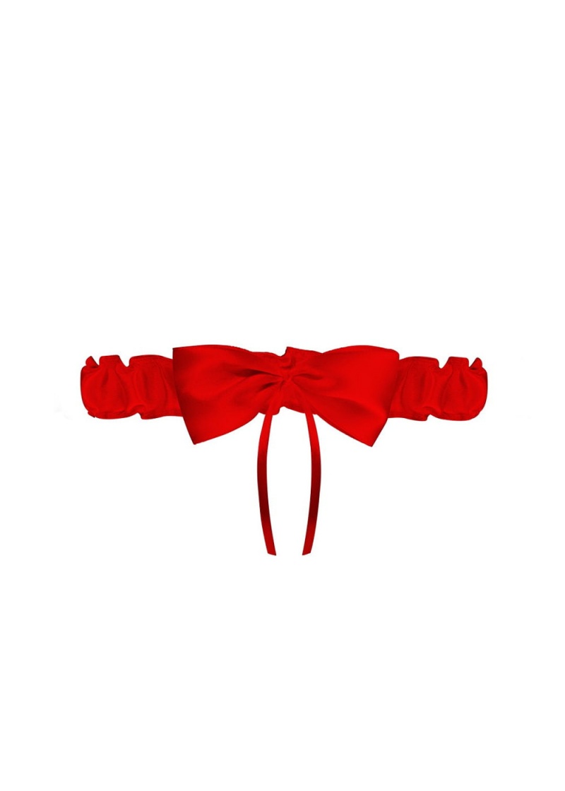 Podwiązka Andora PW-48 marki Julimex w czerwonym kolorze. Model wykonany z marszczonej satyny, ozdobiony kokardką.