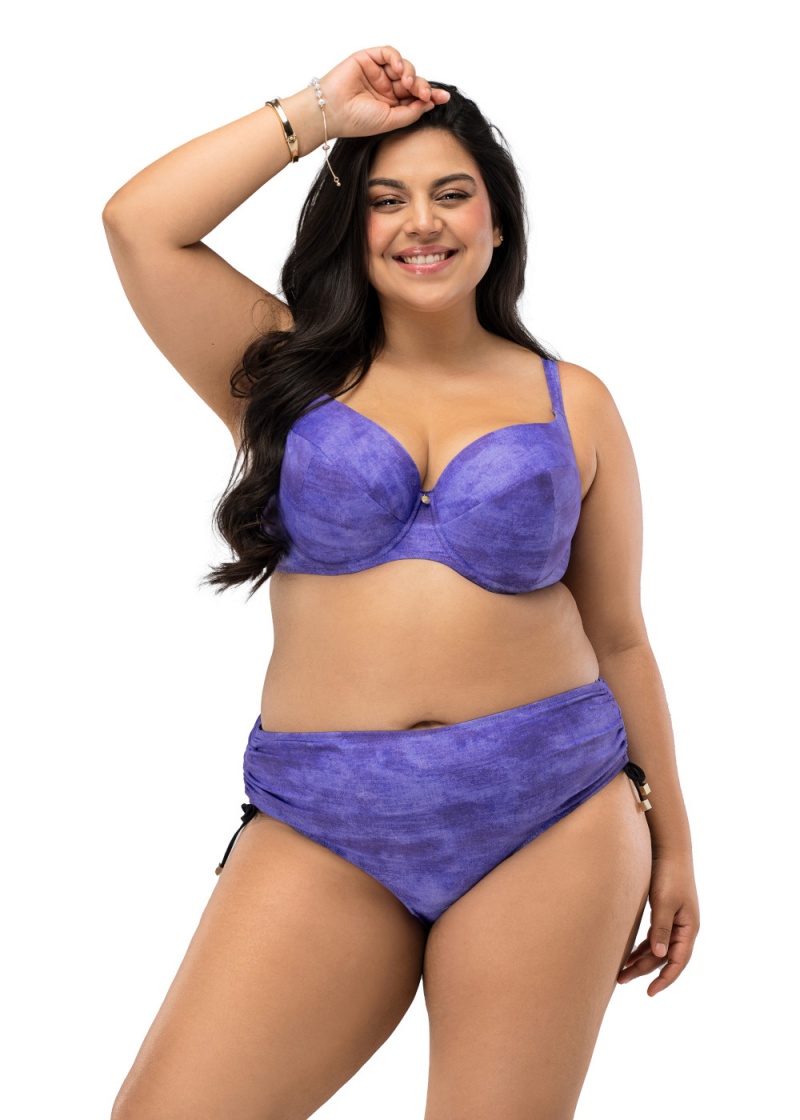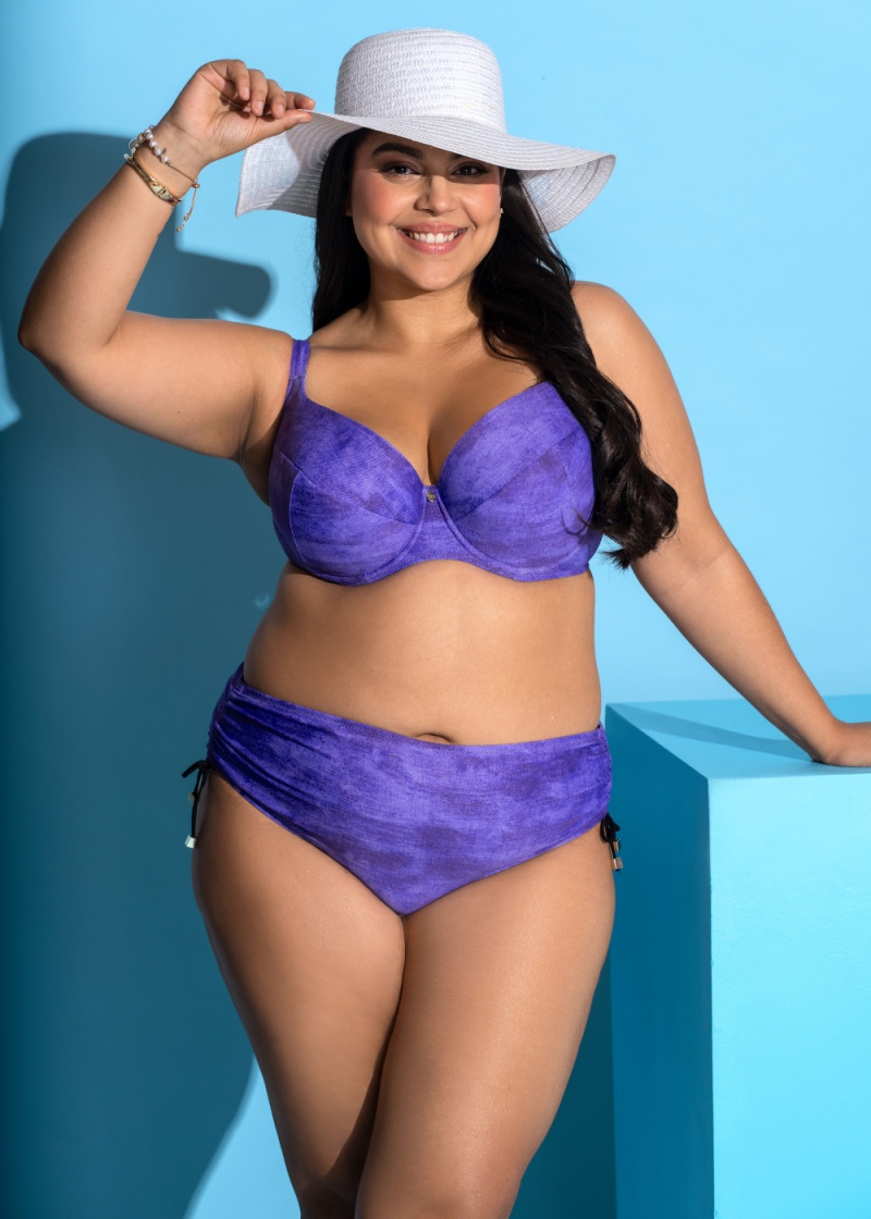 Figi kąpielowe Samos N02 typ wysokie w fioletowym odcieniu. Model wykonane z wysokiej jakości tkaniny odpornej na chlor i promienie UV. Ładnie dopasowują się do kształtu kobiecej sylwetki, podkreślając jej atuty. Podwyższony stan ukryje niedoskonałości sprawi, że będziesz czuła się bardzo komfortowo. Na Bokach troczki pozwalające wyregulować odpowiednią wysokości fig.